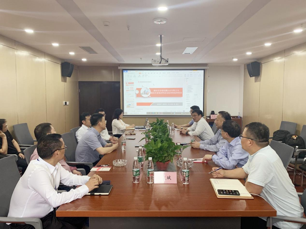 5月25日下午,中南水泥董事長、總裁呂文斌、南京凱盛董事長馮建華一行蒞臨位于中國(長沙)創(chuàng)新設(shè)計產(chǎn)業(yè)園的湖南建材院檢測科研基地及湖南省泰德檢測認證有限公司(以下簡稱“泰德檢測認證”)考察調(diào)研。