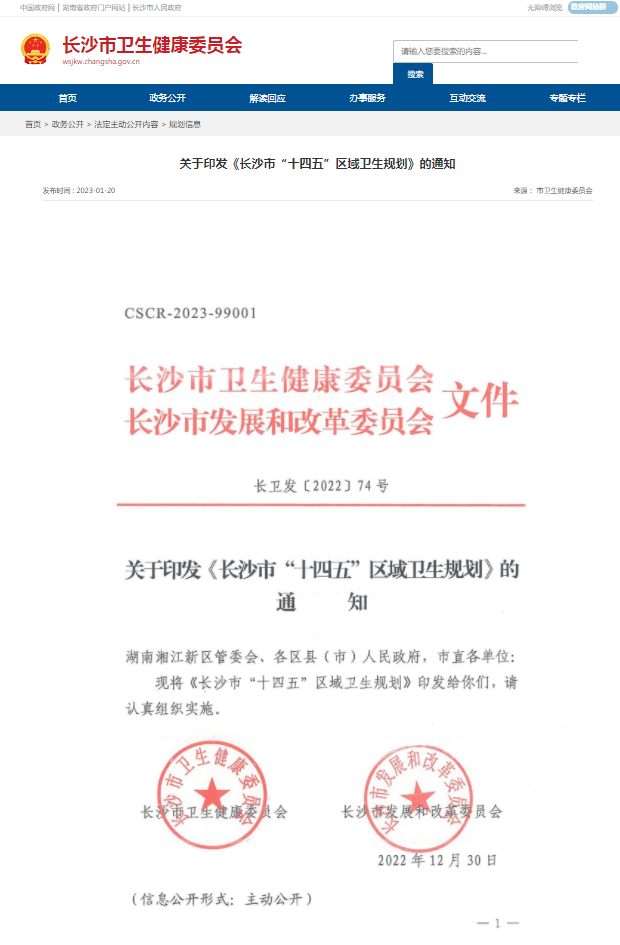 近日,由我院承接編制的《長沙市“十四五”區(qū)域衛(wèi)生規(guī)劃》(以下稱“規(guī)劃”)正式發(fā)布,該規(guī)劃于2021年9月啟動(dòng)編制,期間通過召開座談會(huì)、現(xiàn)場(chǎng)調(diào)研、發(fā)放征求意見函、召開專家評(píng)審會(huì)等形式,廣泛征求有關(guān)單位以及社會(huì)各界的意見和建議,耗時(shí)一年多,幾經(jīng)修改完善,最終順利成稿。