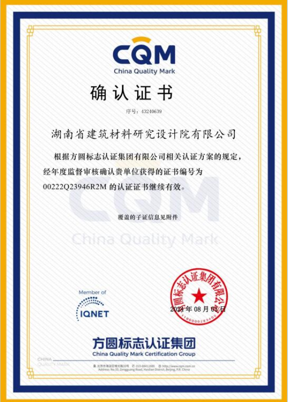 湖南省建筑材料研究設(shè)計院有限公司(以下簡稱HNBMI)順利通過質(zhì)量、環(huán)境、職業(yè)健康安全管理體系監(jiān)督審核,并獲得審核確認(rèn)證書。 6月下旬,HNBMI接受了方圓標(biāo)志認(rèn)證集團有限公司專家組對質(zhì)量、環(huán)境、職業(yè)健康安全管理體系認(rèn)證的監(jiān)督審核。在審核過程中,專家組以嚴(yán)謹(jǐn)、專業(yè)的態(tài)度,對公司的各項管理流程和實際運作進(jìn)行了深入細(xì)致的審查。他們通過查閱文件、現(xiàn)場交流、員工訪談、項目實地檢查等多種方式,全面評估了公司管理體系的運行狀況。